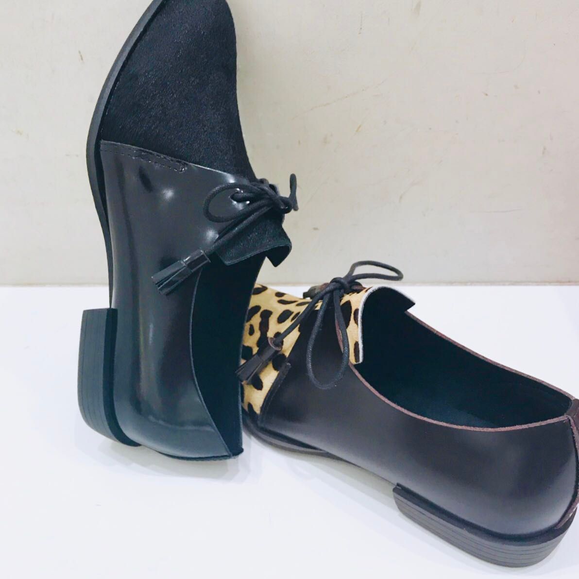 ハラコとガラス革のコンビ。