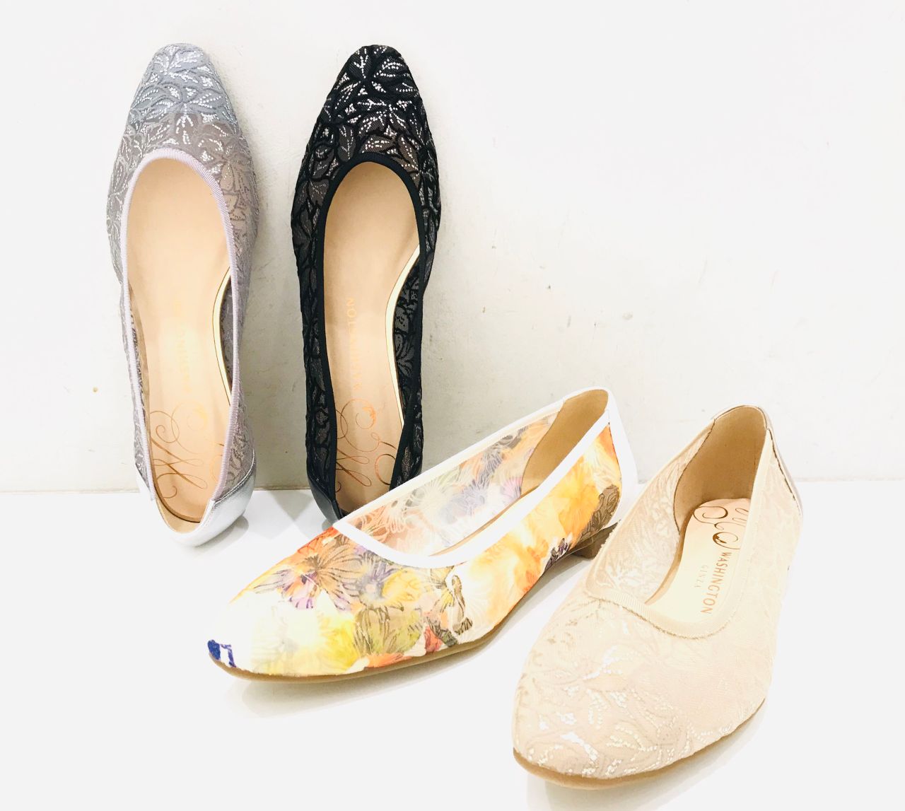 チュールで軽やかなフラットパンプス。
