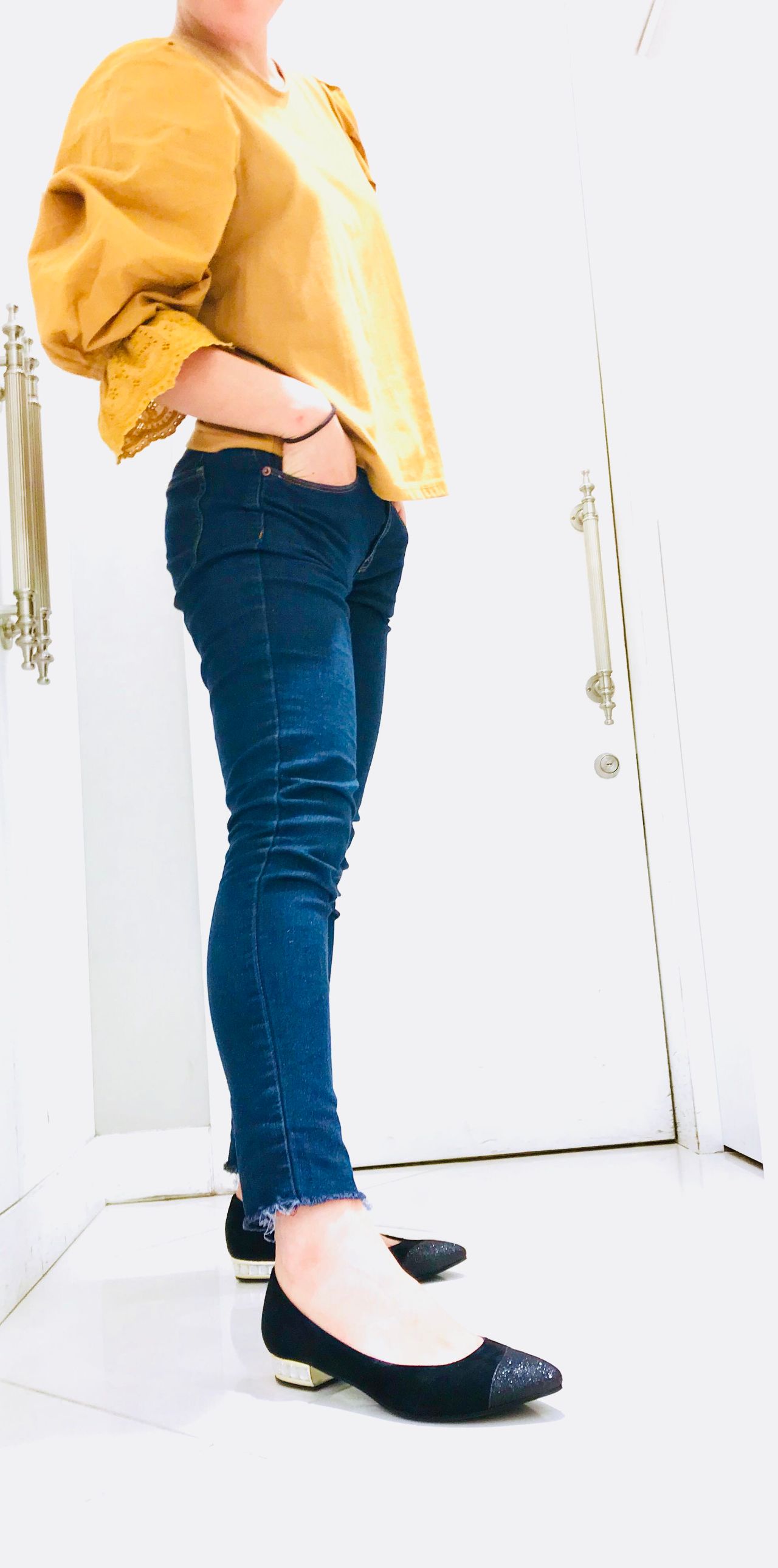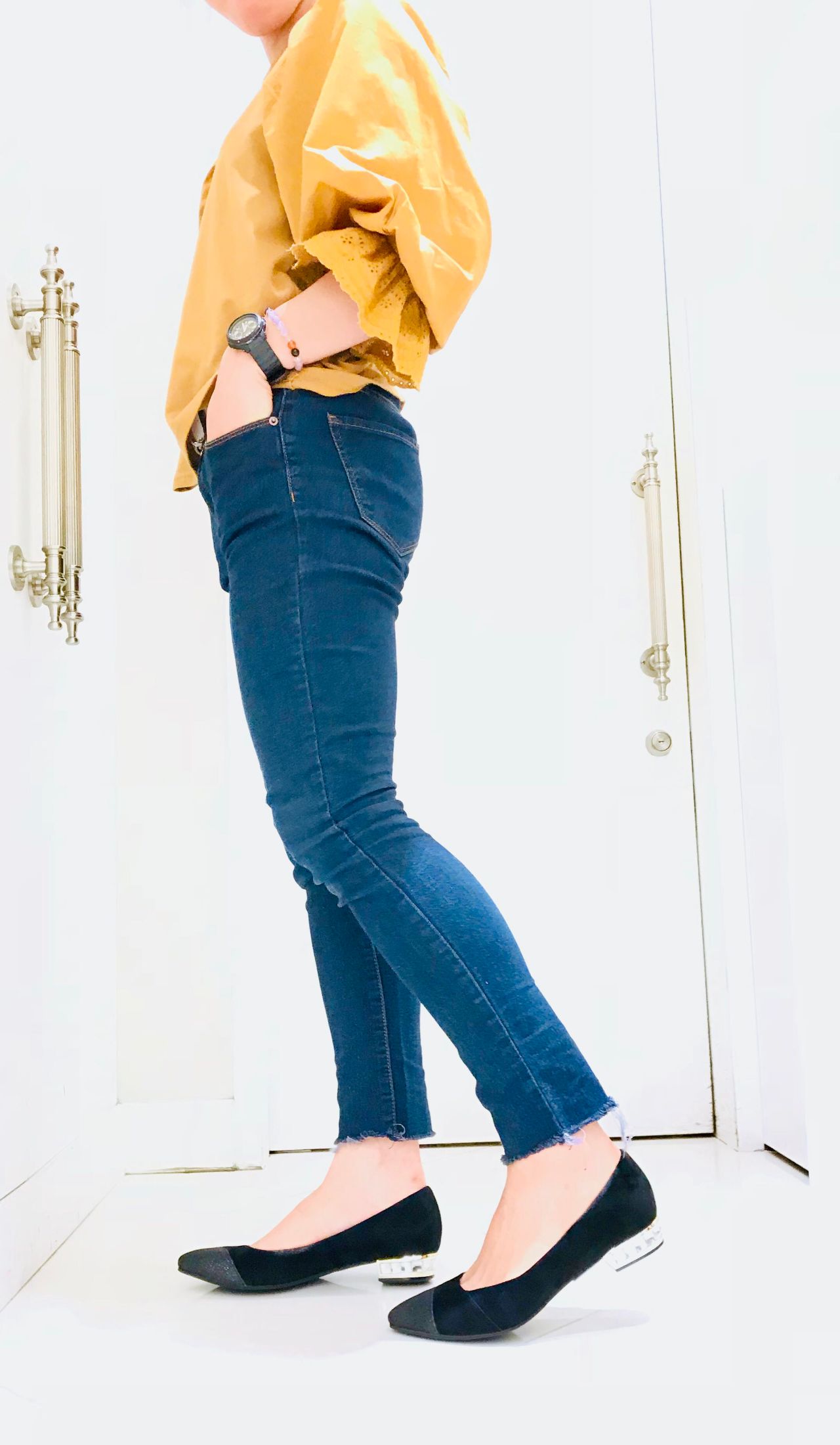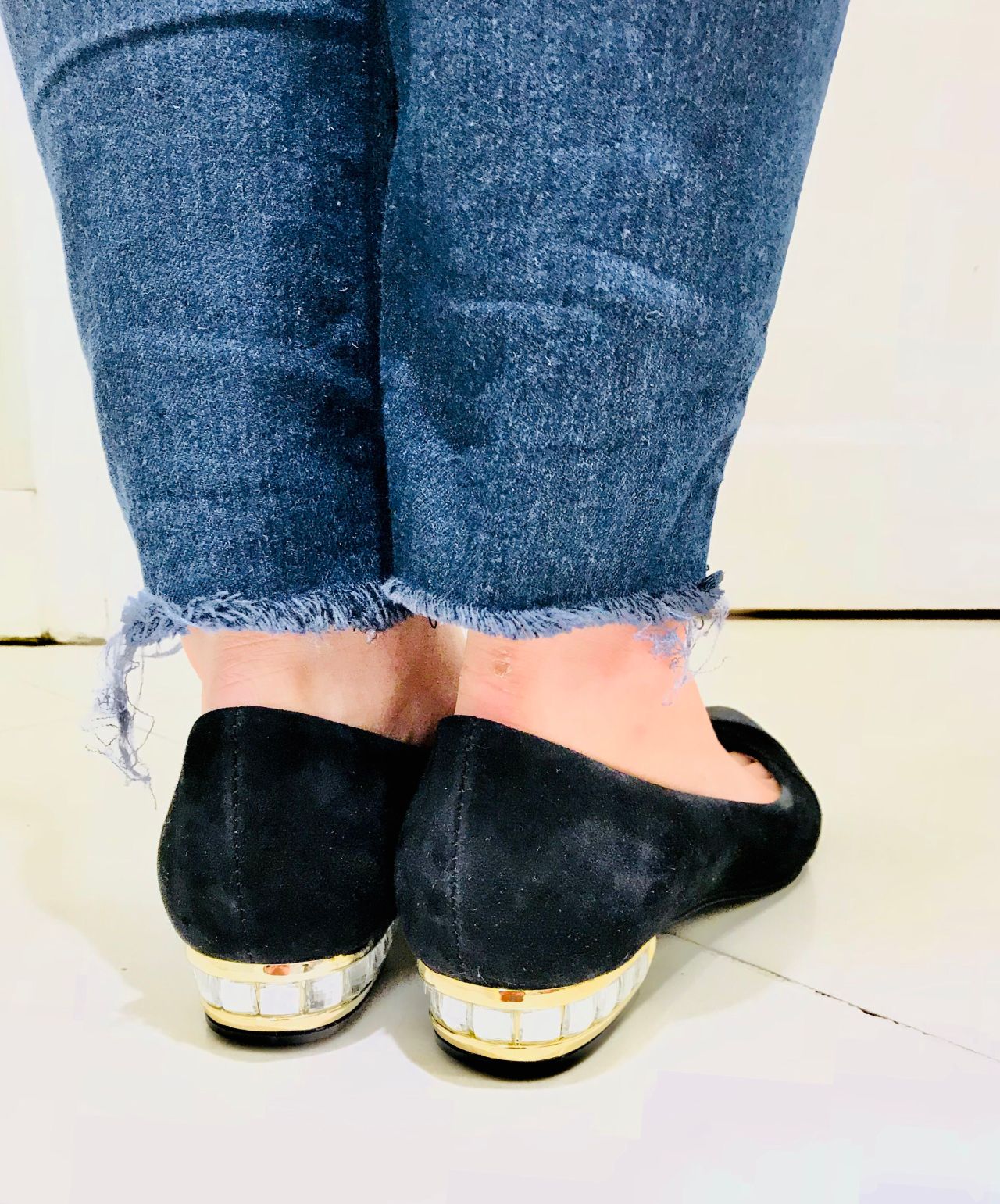 シャープなローヒールでたちまち美脚に。