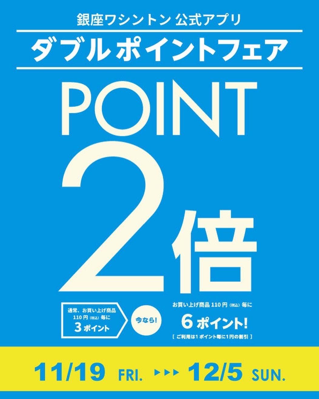 『銀座ワシントン公式アプリ』ではWASH・Essay・銀座ワシントン各店とオンラインショップ共通でポイントをご利用いただけるようになります。