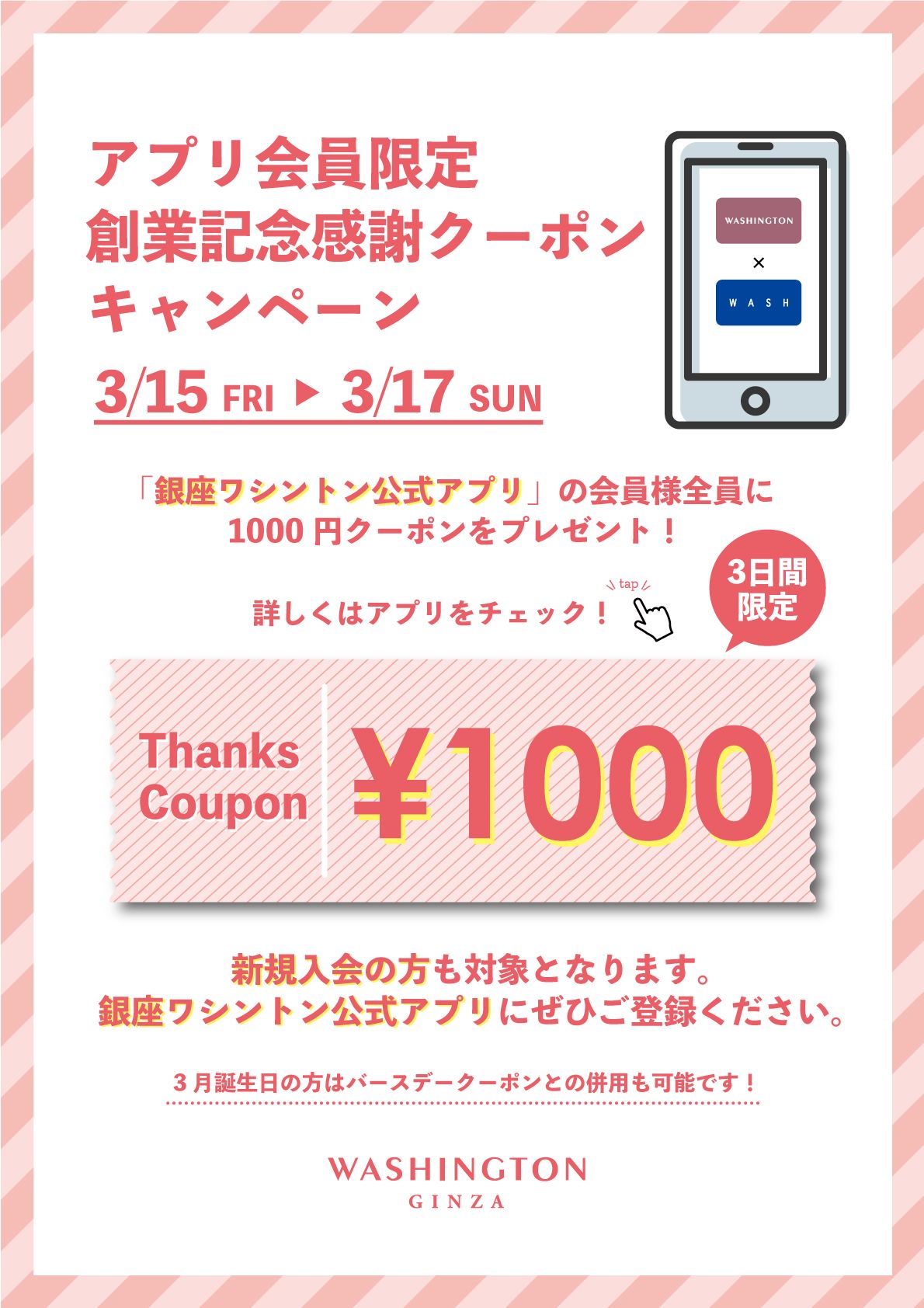 銀座ワシントン公式アプリ会員のお客様に