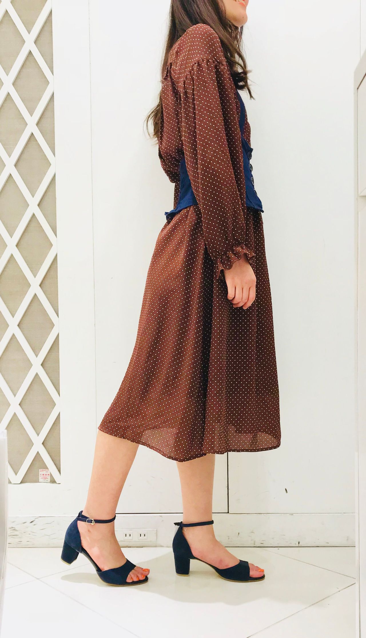 ドットのワンピースでほんのり可憐な雰囲気を。