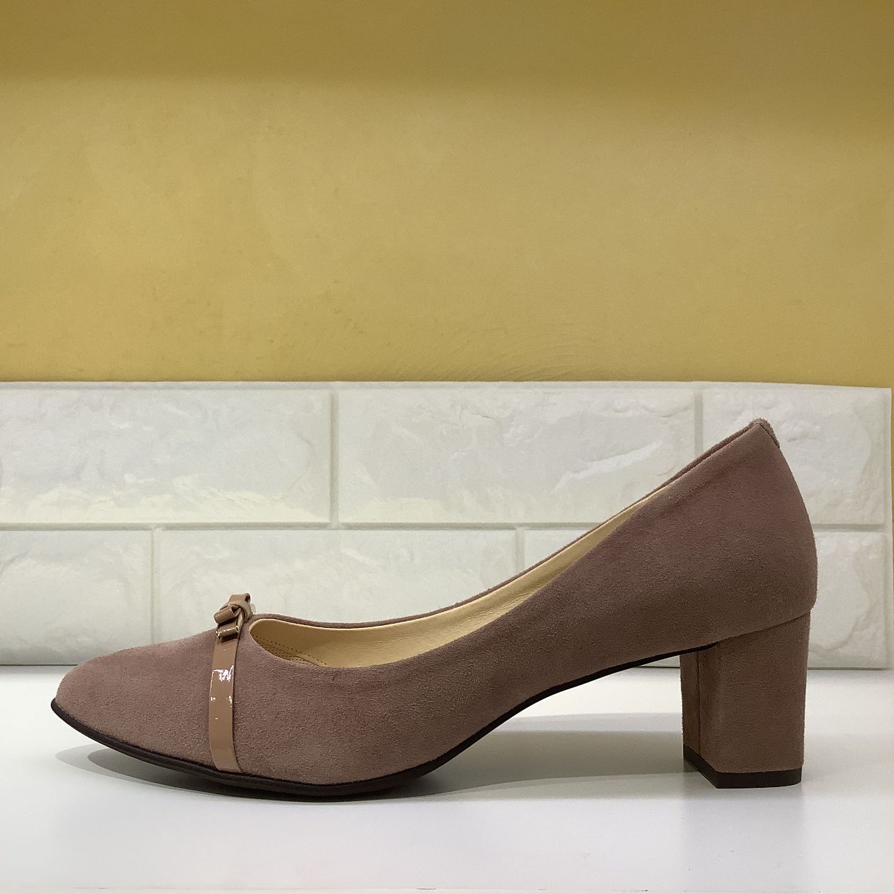 エナメルの小さなリボンがアクセントとなったこちらの