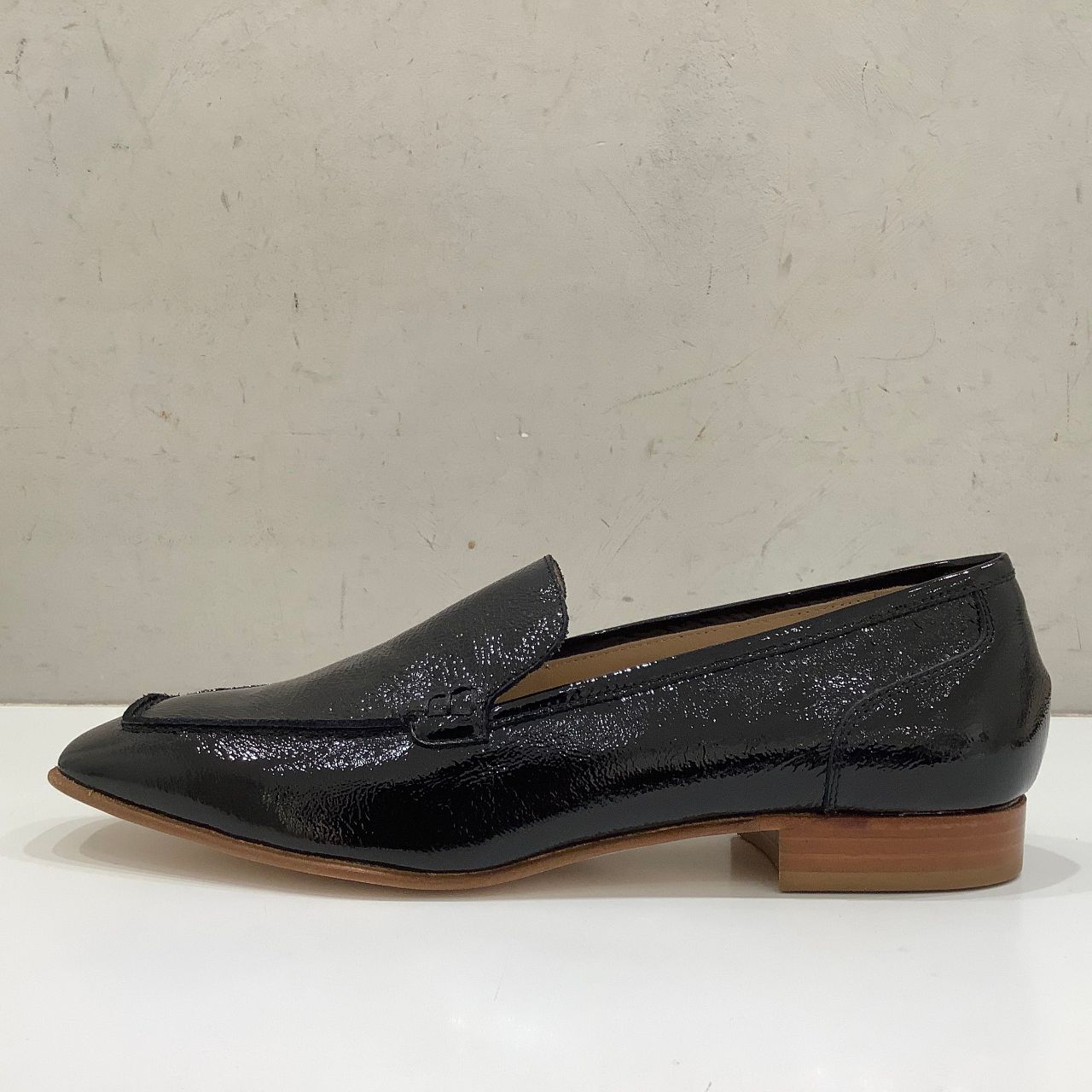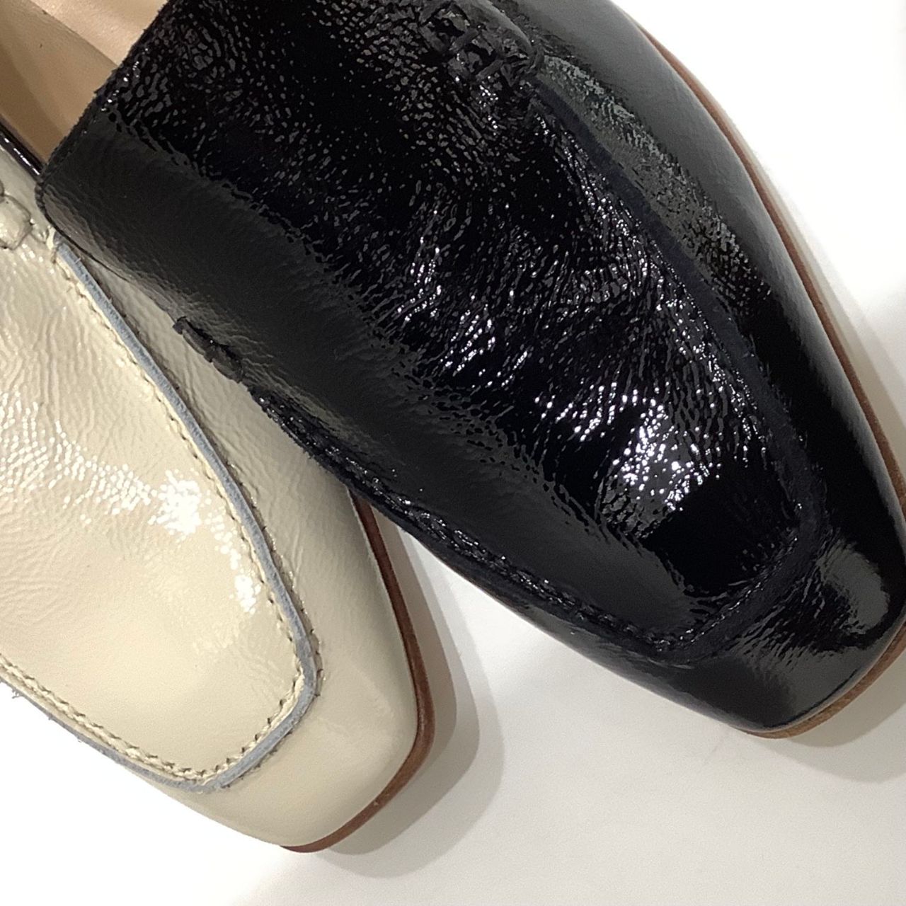 シュリンクエナメルが独特な表情の一足です。