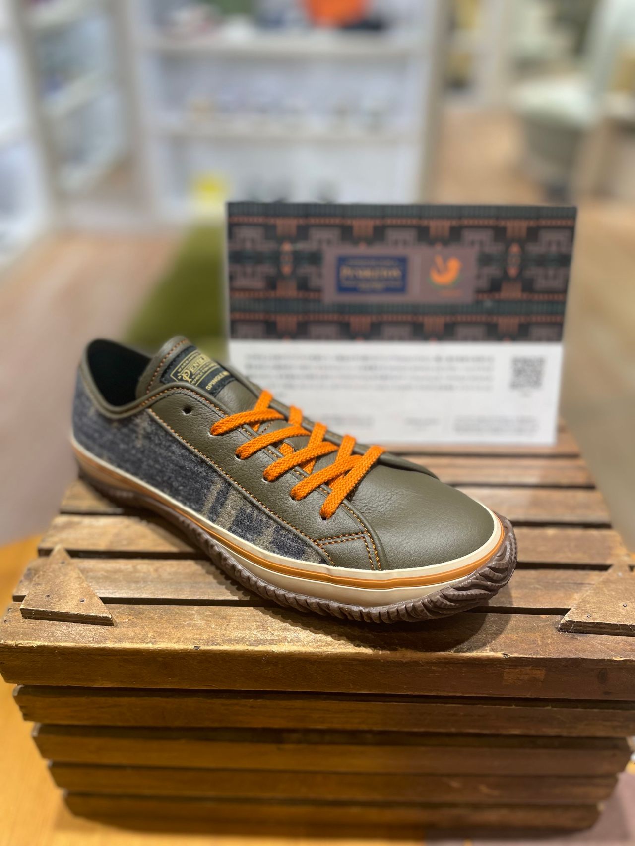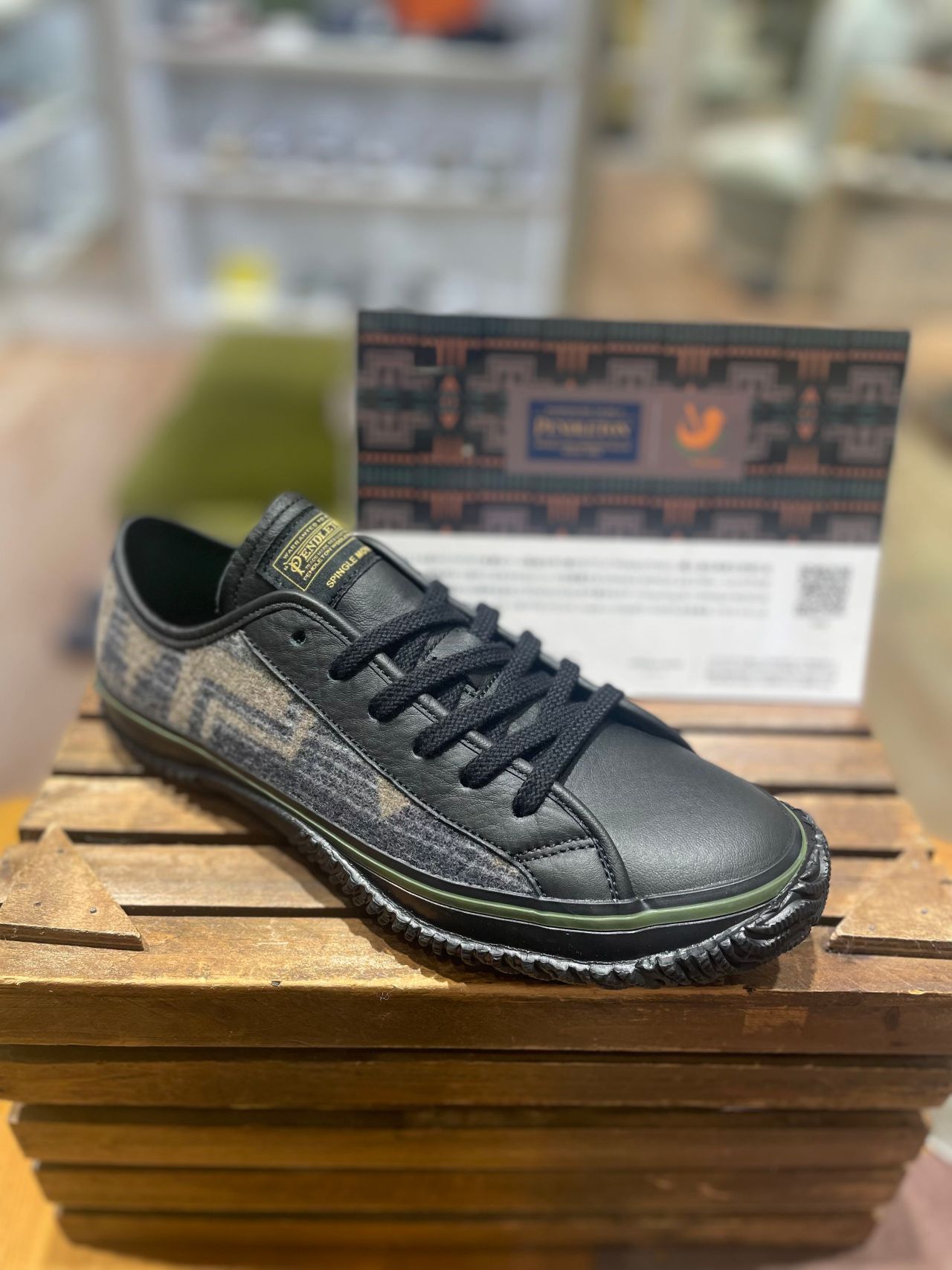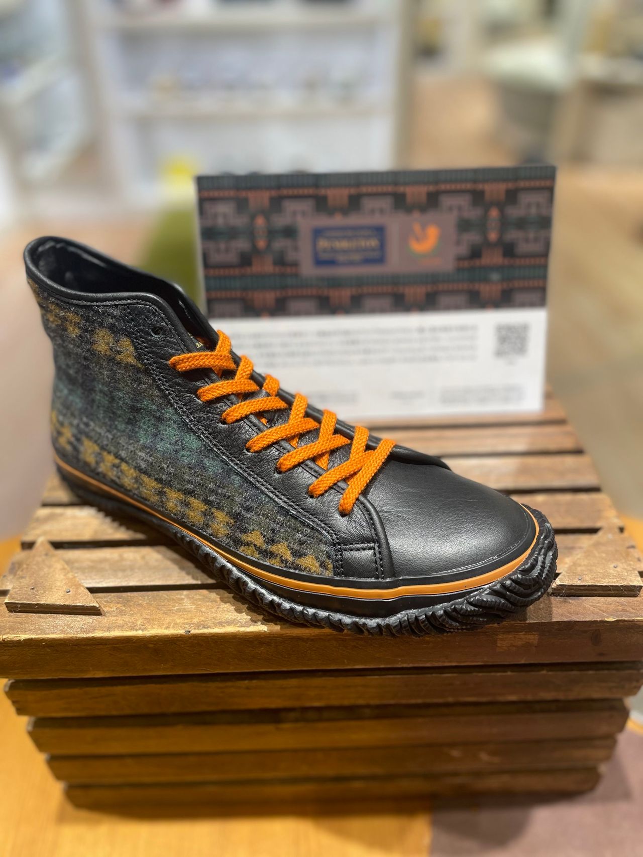 150年以上も前からアメリカで良質なウール製品を作り続けるブランド「PENDLETON」と、職人達の高度な技術と品質を活かした個性的かつ流行に左右されないシューズを提案する「SPINGLE MOVE」によるコラボレーションモデルが誕生しました。本年誕生100周年を迎えた「PENDLETON」を代表するパターン「Harding」を、「SPINGLE MOVE」のコーポレートカラーで別注。オレンジ、グリーンをアクセントにした、made in USAのウール100%の生地を、アッパーにたっぷりと使用しています。