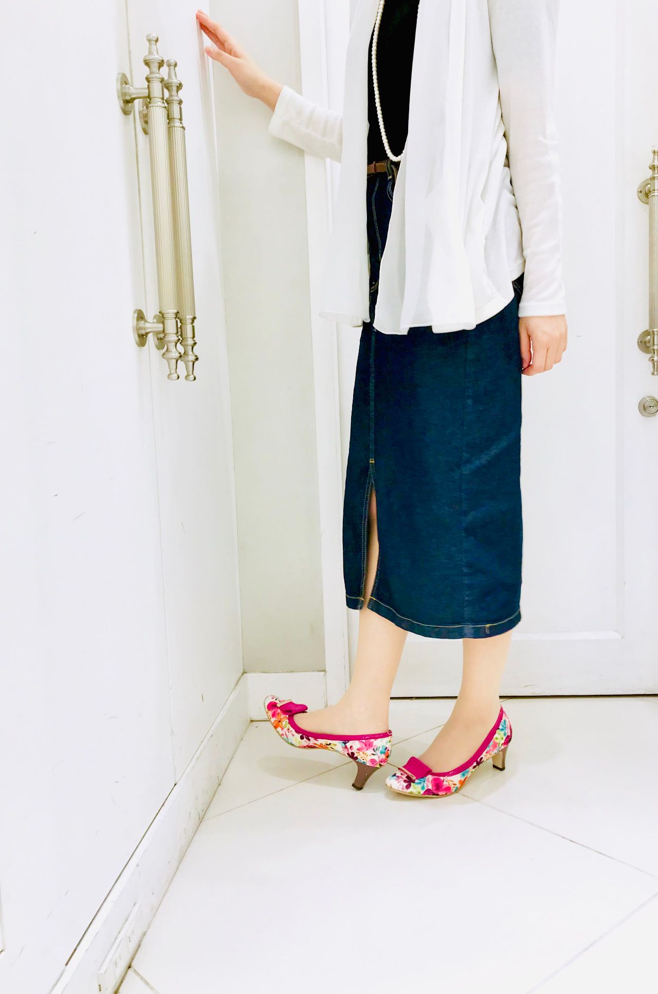 光沢素材と花柄で、お呼ばれにもオススメ。
