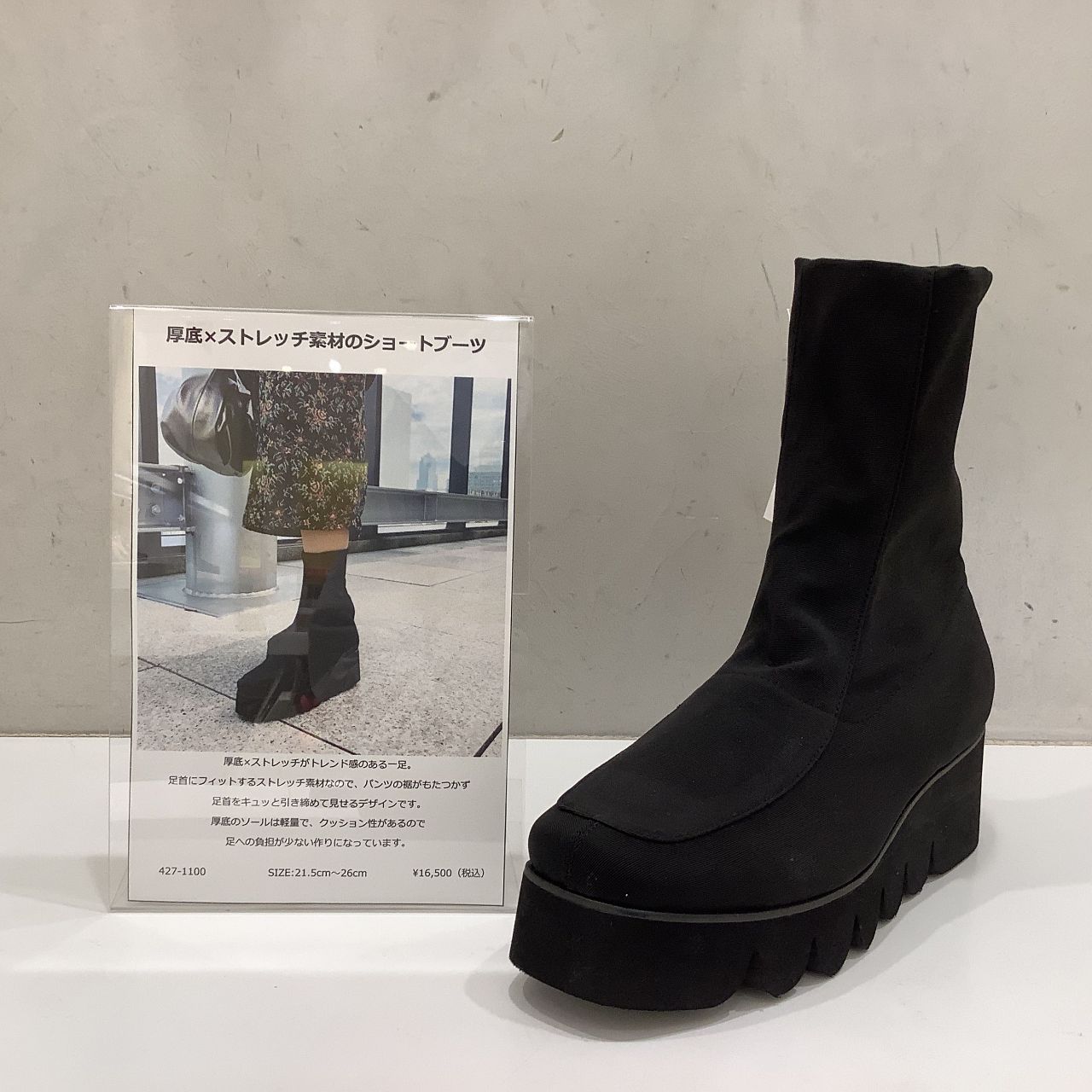 厚底とストレッチがトレンド感のあるお靴です。