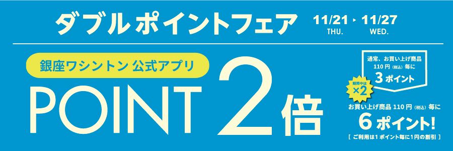 そして、合わせて銀座ワシントン公式アプリのダブルポイントフェアも同時開催!