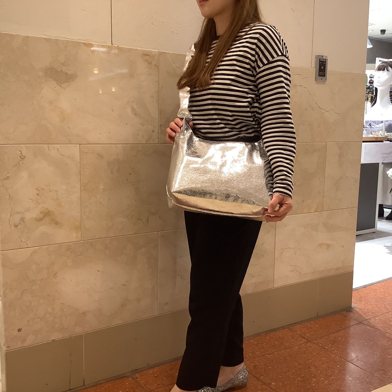 メタリックに輝くデザインはコーディネートをさらにお洒落に