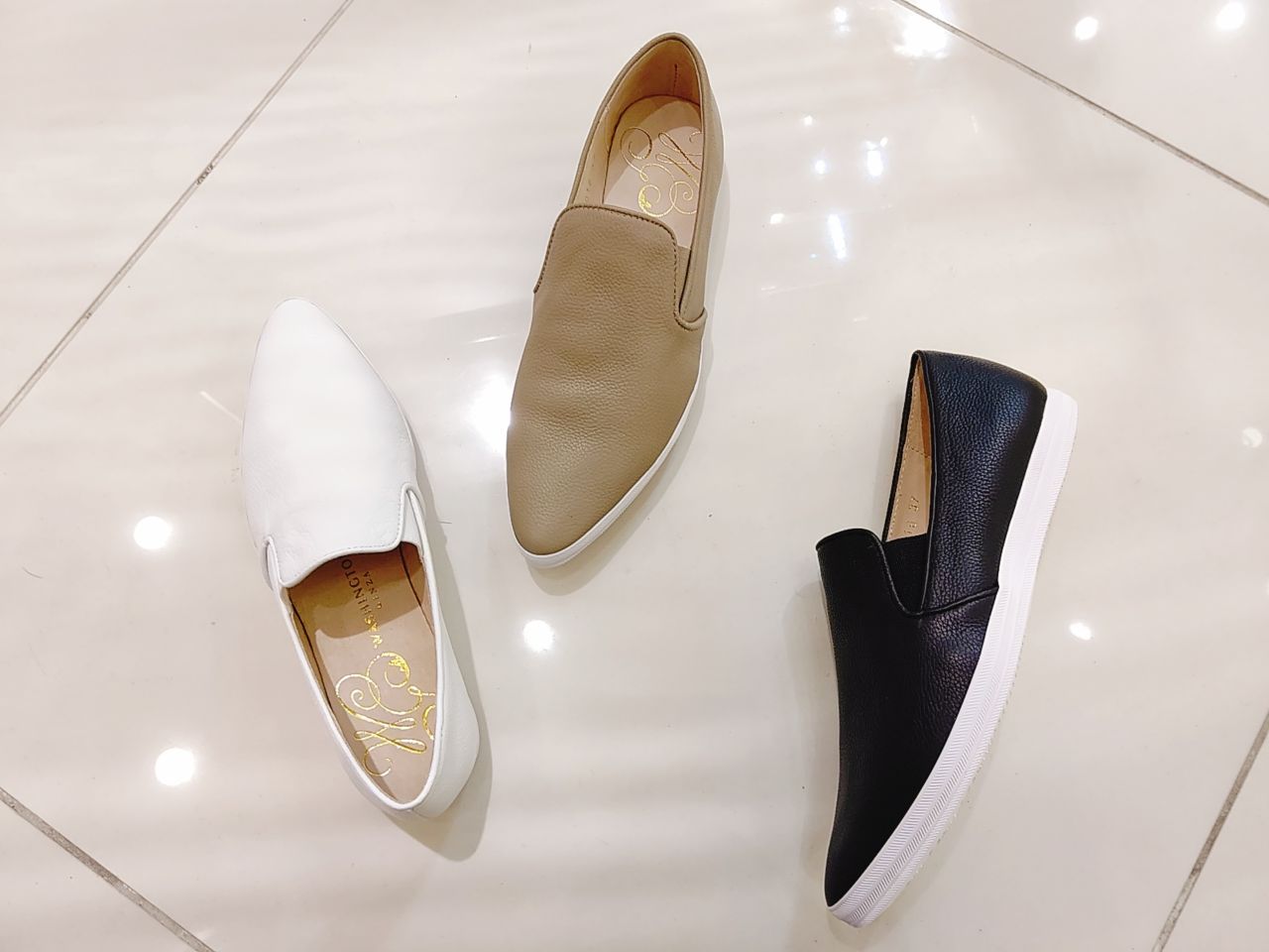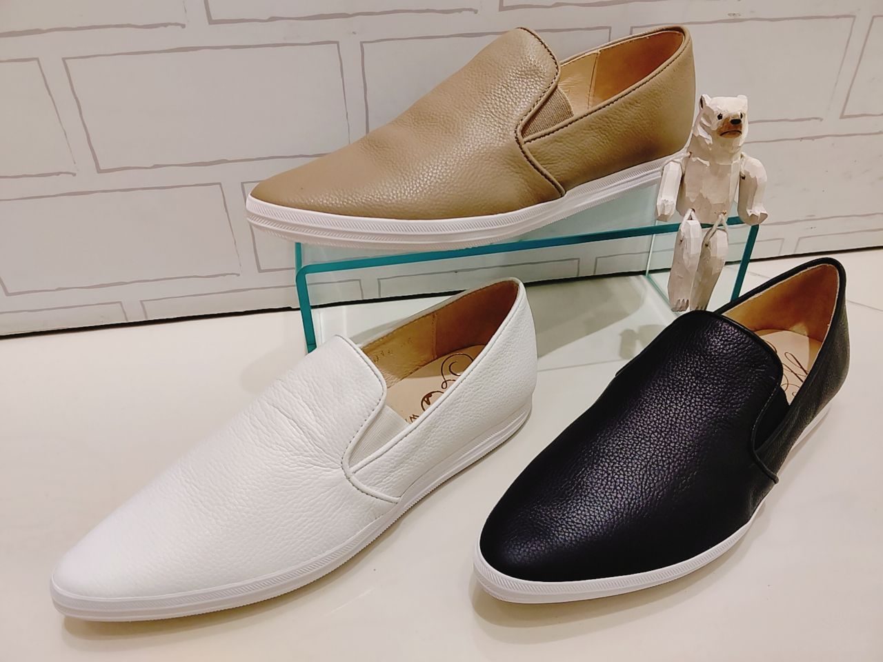 シャープなポインテッドトゥのスリッポンは、足元をすっきりと見せてくれる人気アイテム